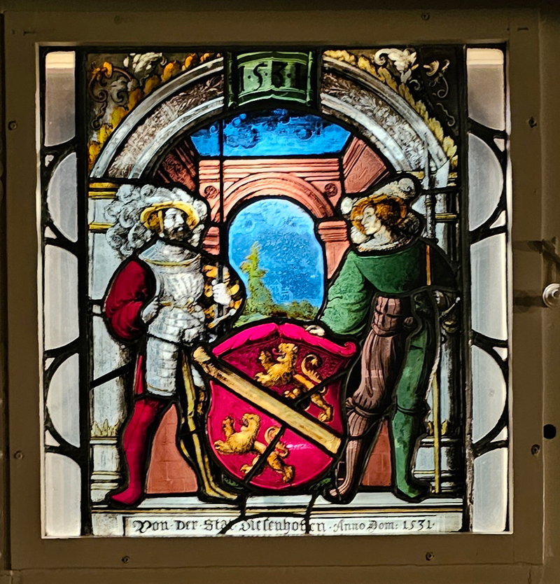 Die erste dieser Wappenscheiben wurde 1531 von Diessenhofen gespendet. Diessenhofen und Stammheim zogen 1524 auch gemeinsam in den Ittinger Sturm, bei dem die Anhänger der Reformation (Luther, 1517) das Kloster Ittingen, Bastion der «alten» Religion, nach ausgiebigem Gelage angezündet hatten.